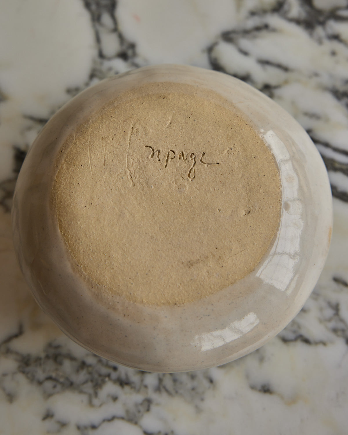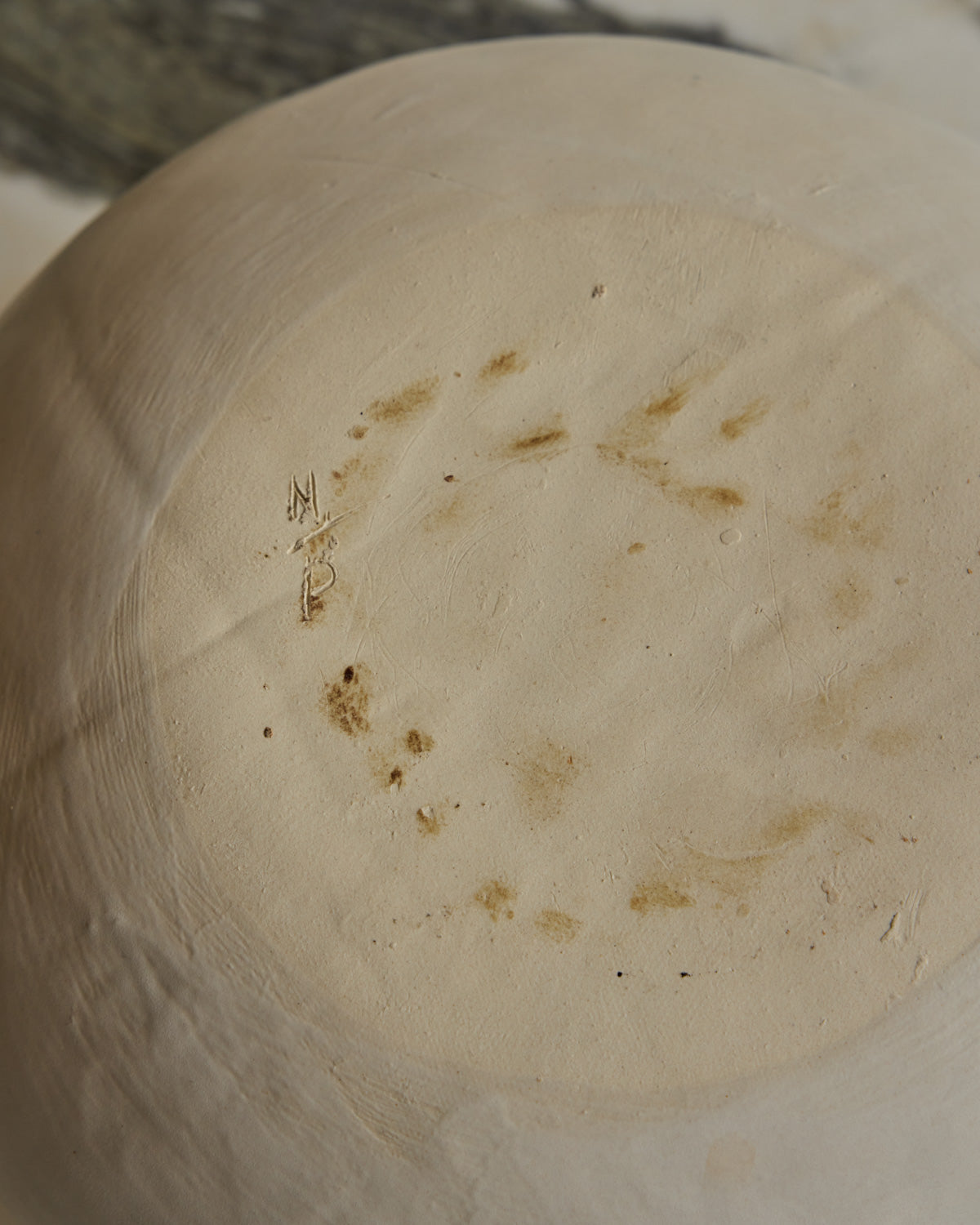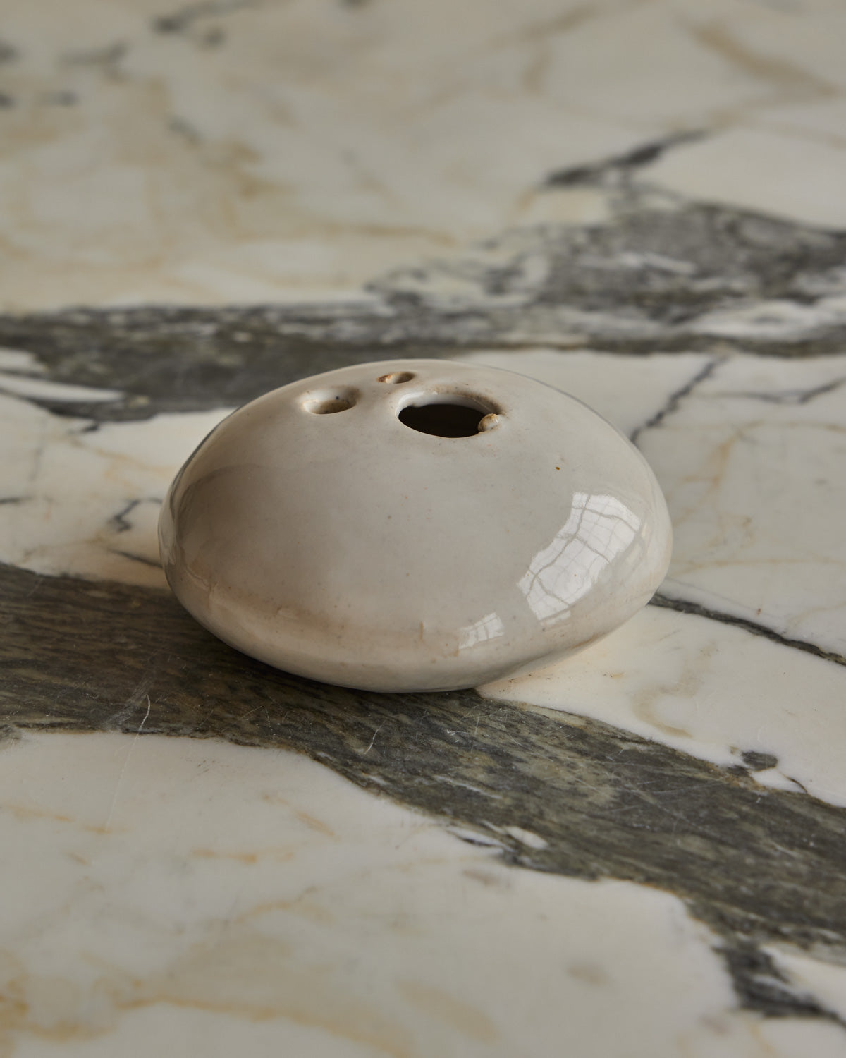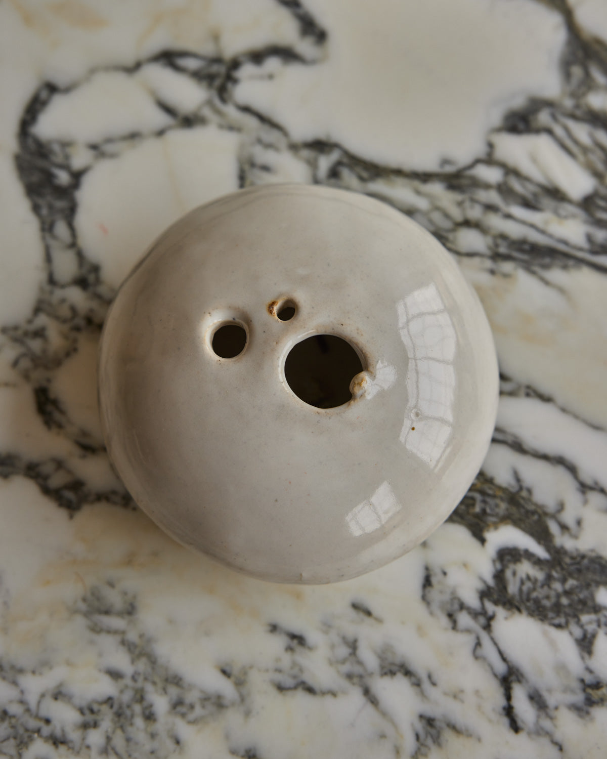 These vessels are part of an ongoing series of rounded forms. They are hand built and blown into to achieve a certain volume. I liken the sizes to parts of the human form. The large and medium are glazed in a satin white glaze and the small is a white gloss.