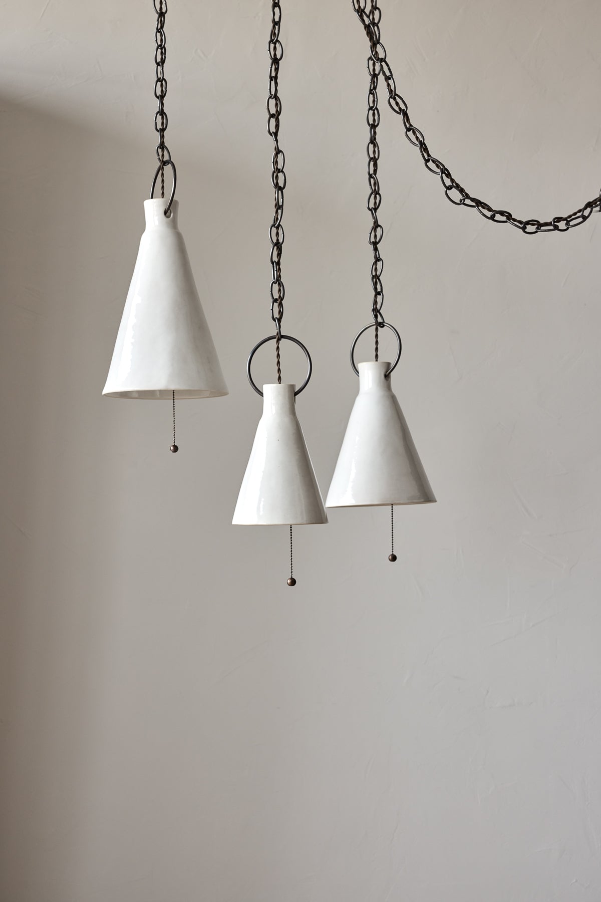 The Salt colorway is most recommended for areas where the funnel is an important source of light. The light emitted is directed down as the clay body is not translucent. The height of the fixtures will directly determine the amount of light within the space.
