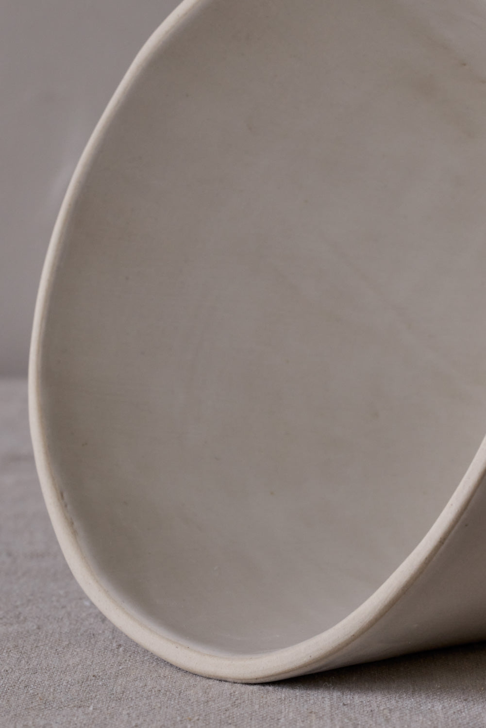 The Salt colorway is the classic white gloss glaze that NPage Studio is known for. It is a bright white color and a very glossy finish. The contrast is subtle as the white stoneware body is just a little warmer in color than the bright white of the salt glaze.