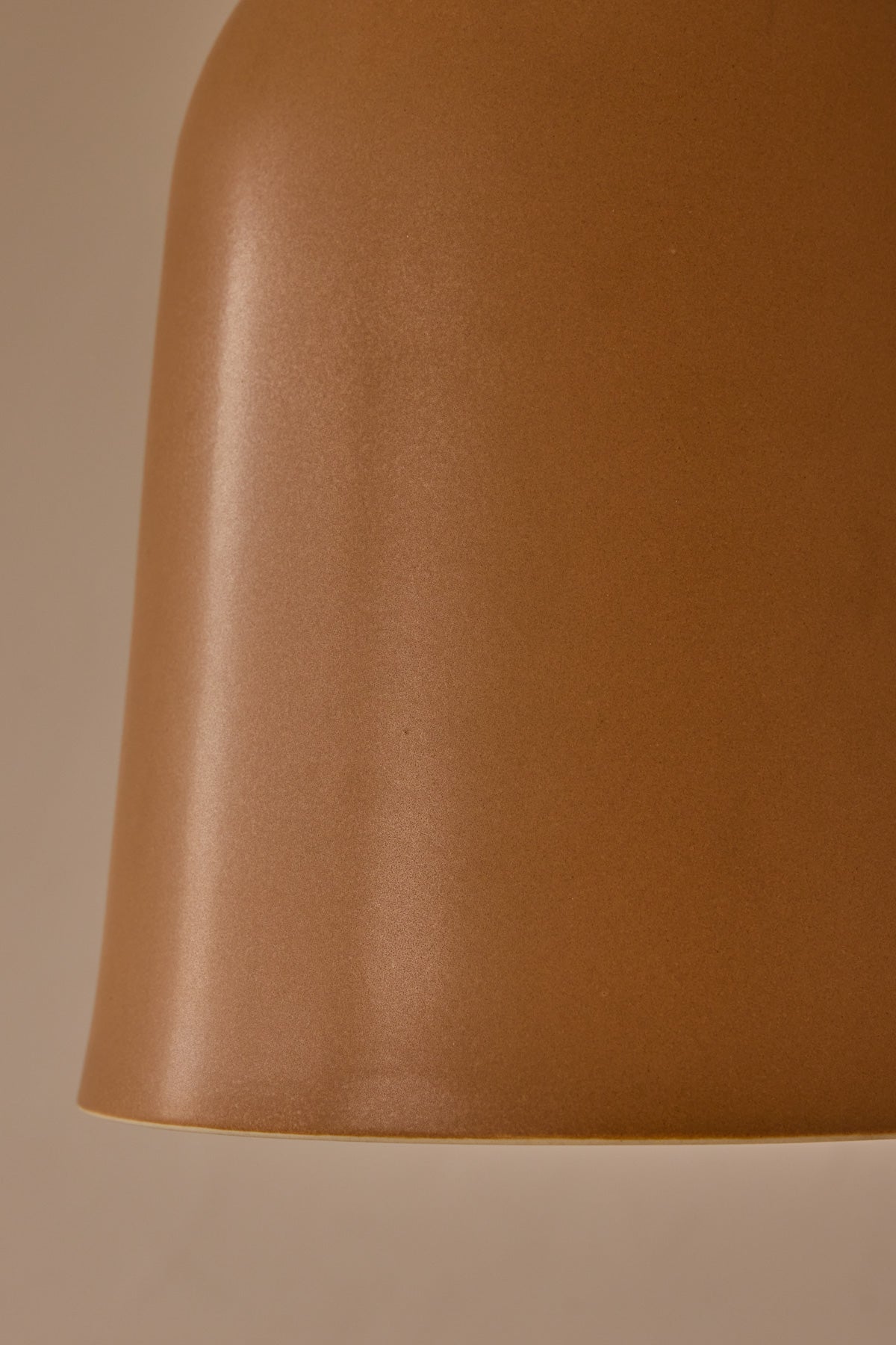 GLAZE: The Chestnut color is a rich caramel color. The glaze is a satin finish which has a hint of sheen. The interiors of the pendants are unglazed exposing the natural white clay body.